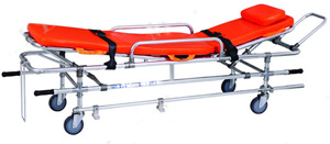aluminum alloy stretchers for ambulances are mainly used by outdoor rescue teams. This stretcher is specially designed for the ambulance. Due to its aluminum alloy material tubes and quality design, the B is light weight, antiseptic, rust proof and easy to clean and  has an appealing appearance. Made of Foam cushion, the mattress has two easy handling bed binds on both sides of the bed frame to ensure safety. The stretcher can fold back and forth up to 60 degrees angle. Under the bed, there are four removable and adjustable spanners. It’s equipped with all-angled rolling wheels, two safety belts and standard lock-in accessories for ambulance use.